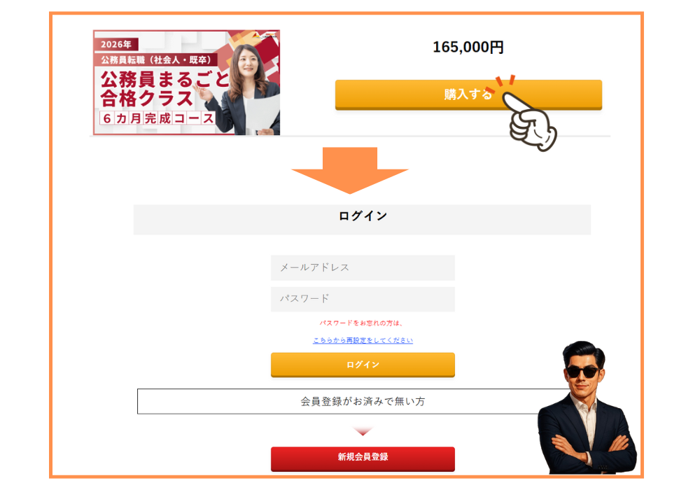 購入ページに進むためには、公務員のライトの会員情報を入力してログインする必要があります