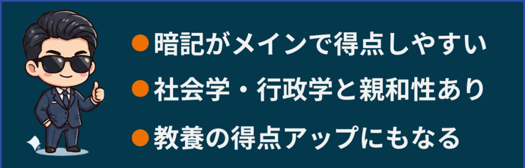 政治学は範囲が広い一方で、頻出に絞れば短期間でも得点につながりやすい科目だからです。