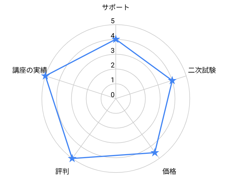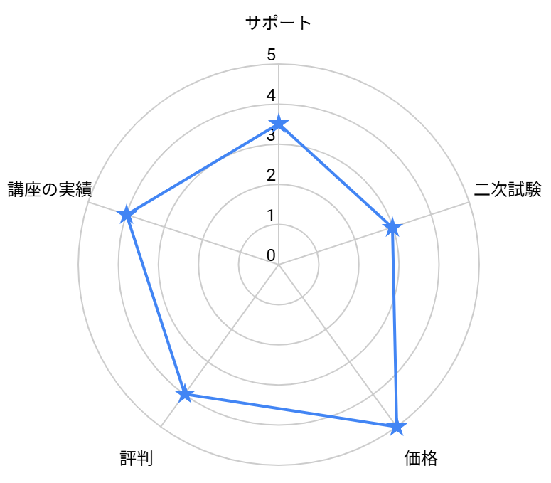 | 順位 | 講座 | サポート | 二次試験 | 価格 | 評判 | 合格実績 |