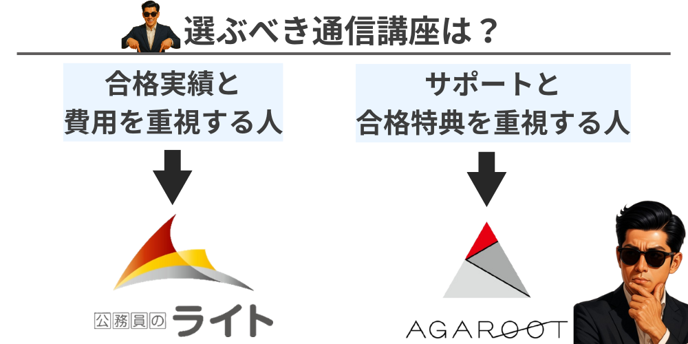 では公務員のライトとアガルートはどちらを選べばいいのでしょうか?